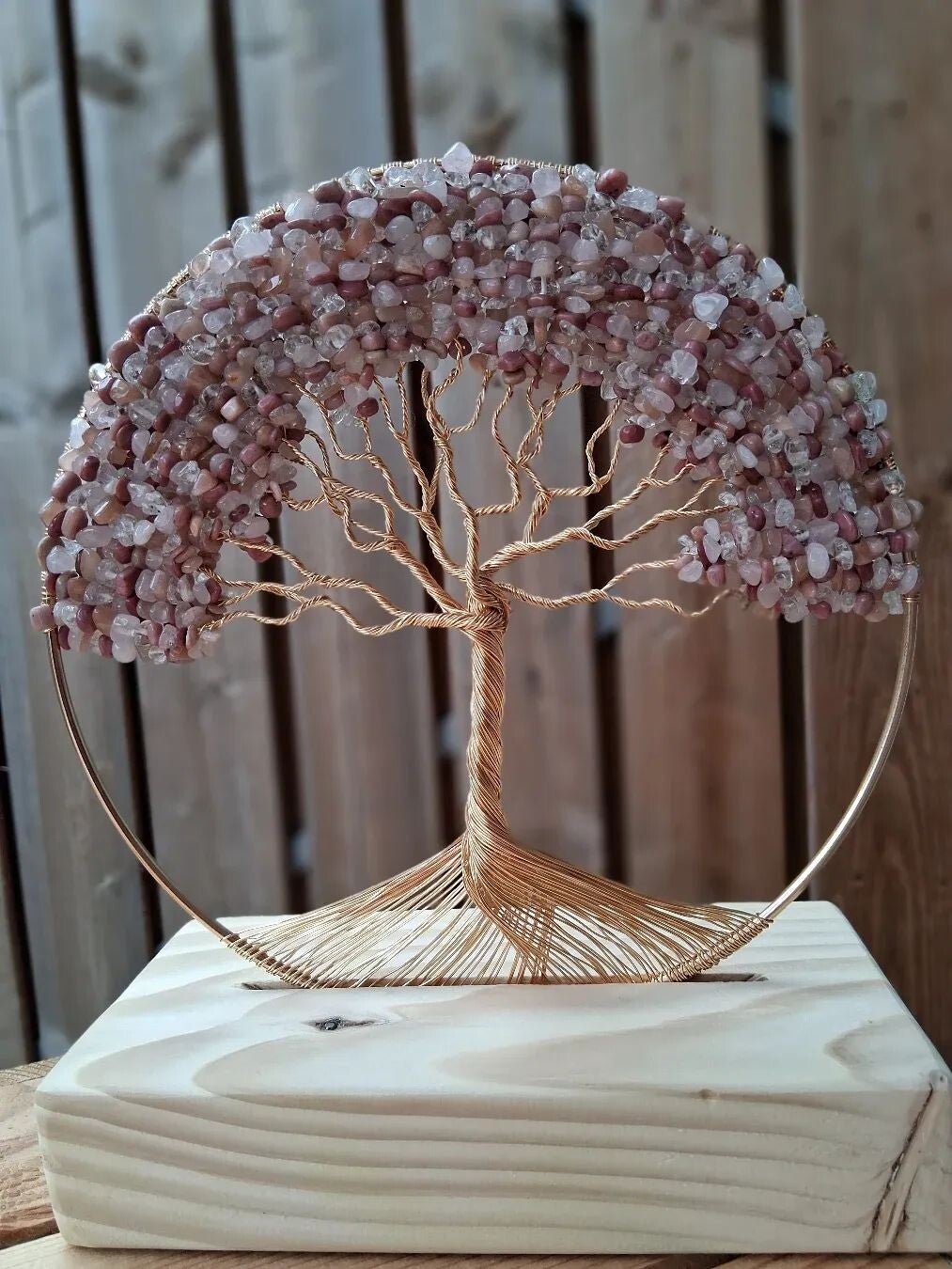Elke boom is met de hand gedraaid uit metaaldraad met edelstenen. geen enkele boom is precies hetzelfde. Ik maak bomen op aanvraag in diverse maten volledig naar uw wens.